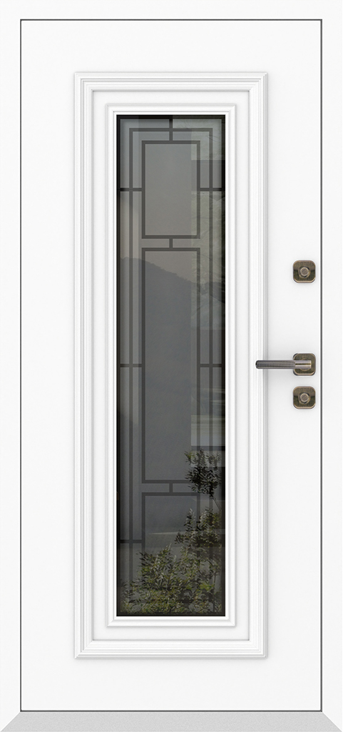 Внутренняя отделка: Оцинкованная сталь 9016, декор. алюм. штапик (классич. дизайн) Фрезеровка М21