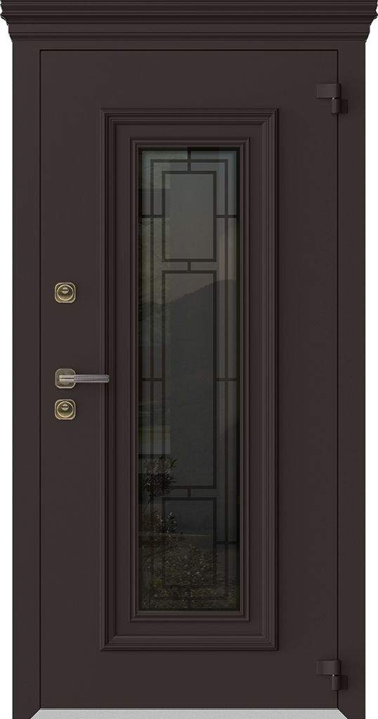 Внешняя отделка: Оцинкованная сталь 8019, декор. алюм. штапик (классич. дизайн), капитель. Фрезеровка М21
