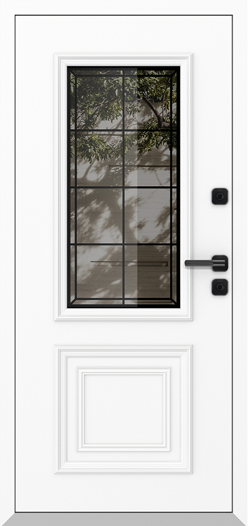 Внутренняя отделка: Оцинкованная сталь 9016, декор. алюм. штапик (классич. дизайн) Фрезеровка М39