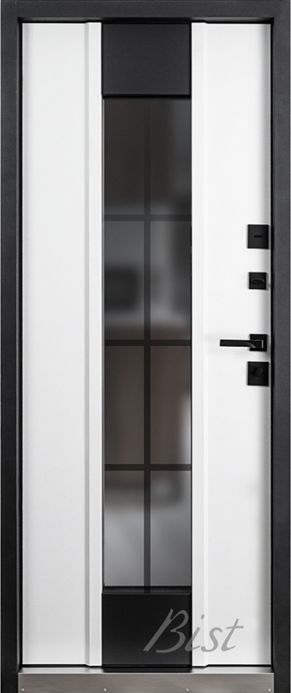 – Тип короба: «Разорванный многокамерный» с утеплителем из каменной ваты + ПВХ спейсер двухкамерный 25мм + воздушная камера, толщина короба 150 мм, защита от промерзания и шума. Усиленный металлический бронекарман под ригеля замка.