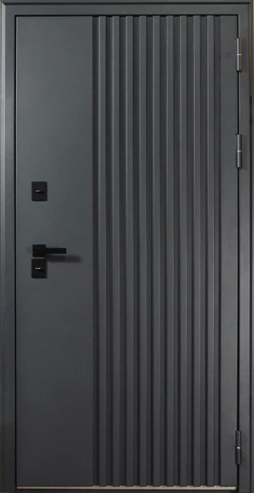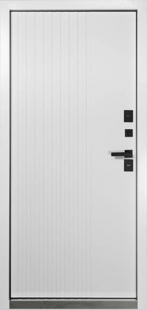 Отделка: Объемный металлический рисунок, окраска «МУАР AKZO NOBEL RAL 7024» + цинкогрунт «AKZO NOBEL» / окраска внутреннего короба и рамки полотна «МУАР AKZO NOBEL RAL 9003», 16 мм фрезерованная МДФ панель «белый мат., серия U полипропилен»
