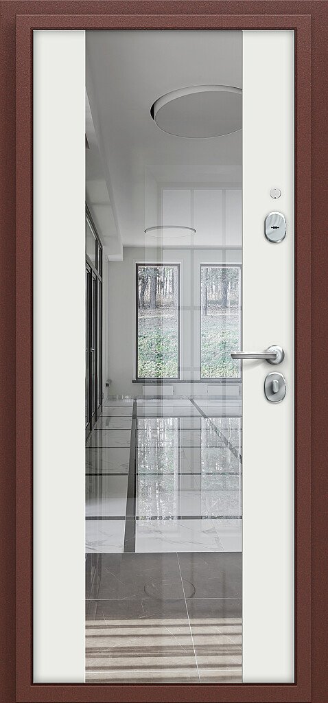 Входная дверь класса Комфорт с наружным открыванием. Изготовлена из легированной холоднокатаной стали. Двери поставляются в правом и левом исполнении.