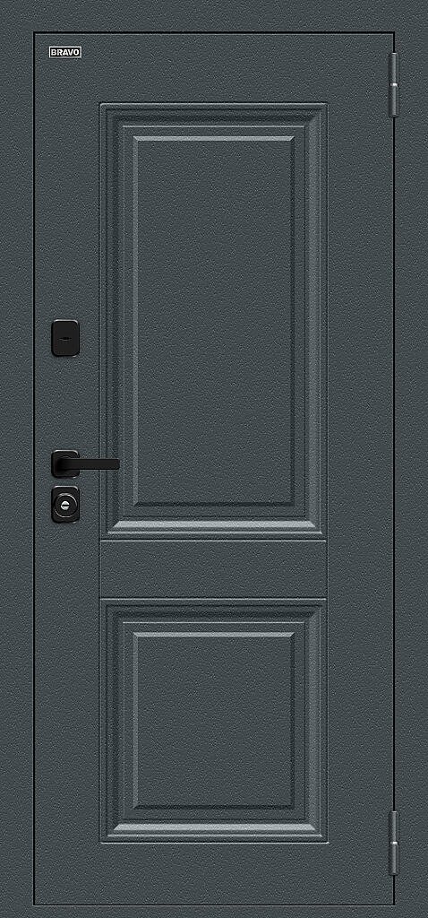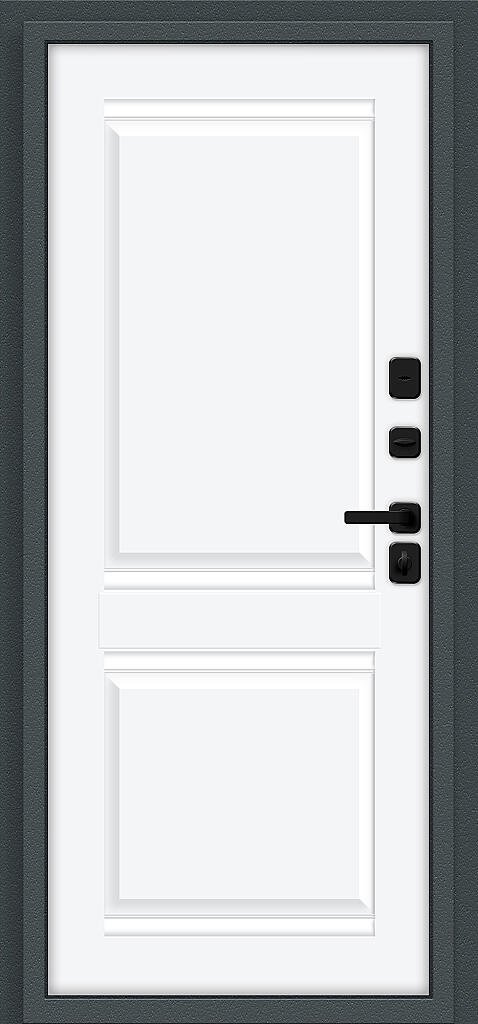 Стальной дверной блок энергосберегающей конструкции с двойным терморазрывом (термомостом), четырехконтурным уплотнением и уникальным цилиндром с термоштоком. Поставляется с правым и левым открыванием наружу.