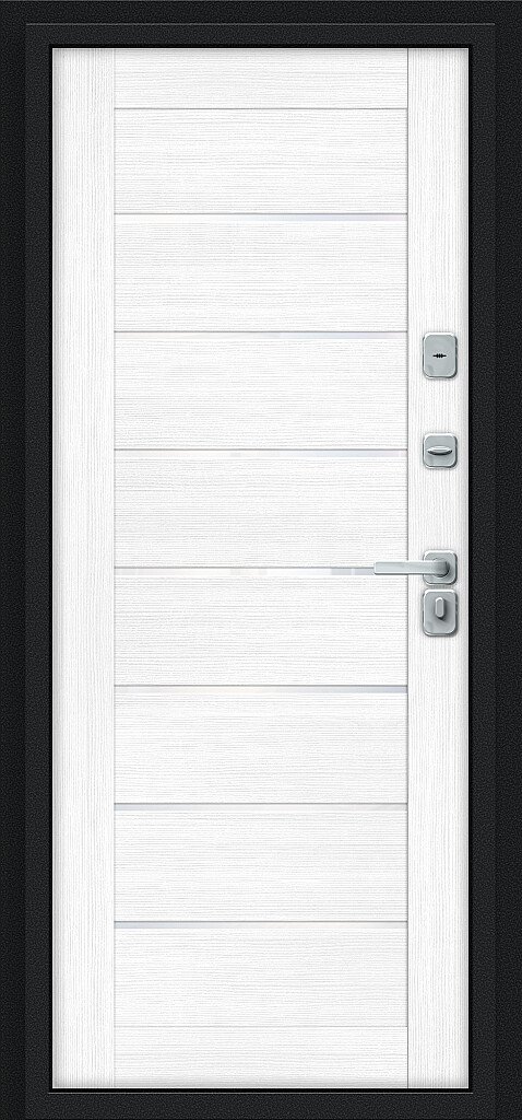 Стальной дверной блок энергосберегающей конструкции с двойным терморазрывом (термомостом) из натуральной пробки, четырехконтурным уплотнением и уникальным цилиндром с термоштоком. Поставляется с правым и левым открыванием наружу.